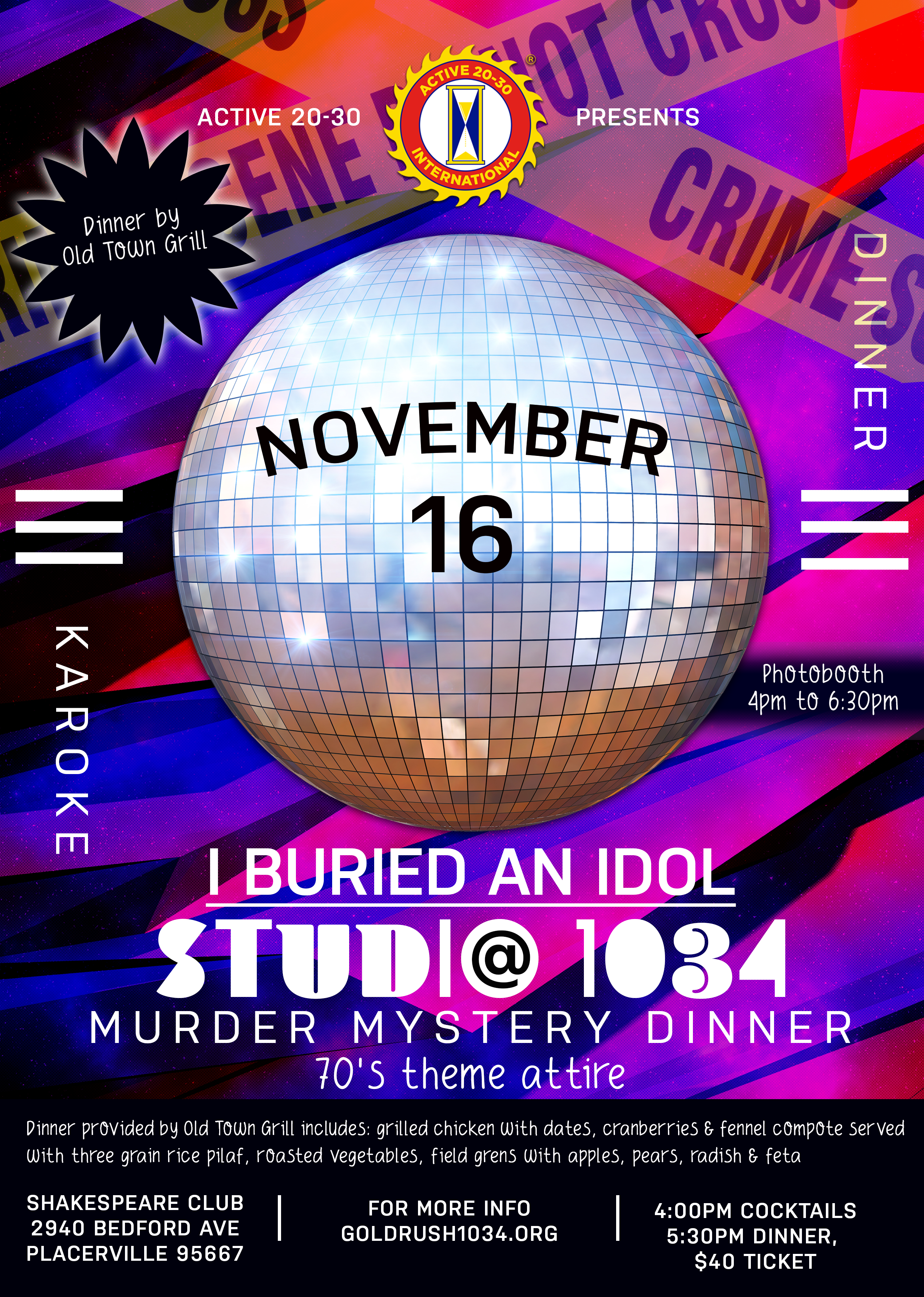This year is going to be a blast! Get ready to join our kooky cast of singing characters on the popular, yet deadly, reality TV show, I Buried An Idol at Studio 1034 – think Studio 54!